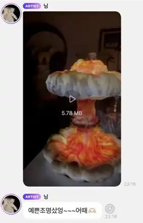 原爆を模した卓上ランプの紹介になります。翻訳すると「可愛いライト買ったよ~どうかな?」という文章になります。