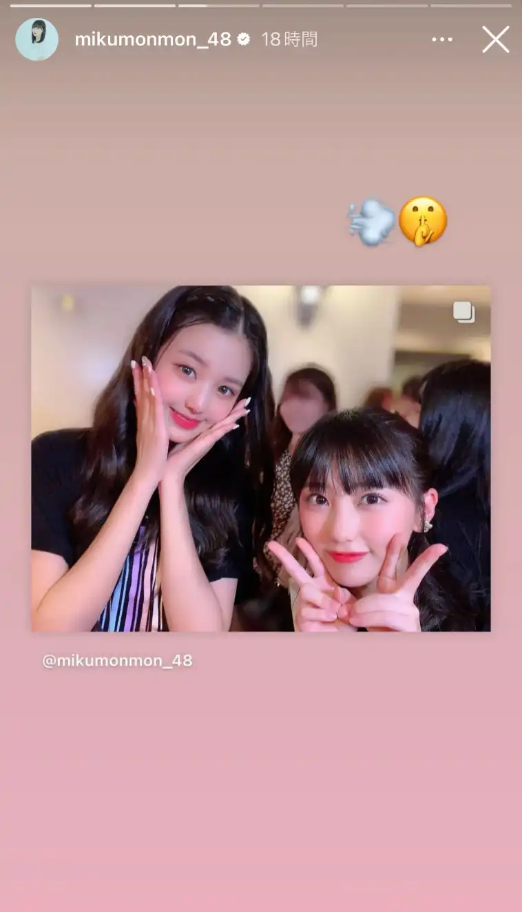 2023年3月17日発売の雑誌「LARME」にて、IZ*ONE時代からウォニョン推しと語っています。「好きな韓国アイドルを1人挙げるならIVEのウォニョンちゃん大好きすぎて苦しい(笑)。生まれ変わったらウォニョンちゃんになりたい」と熱く語りました。