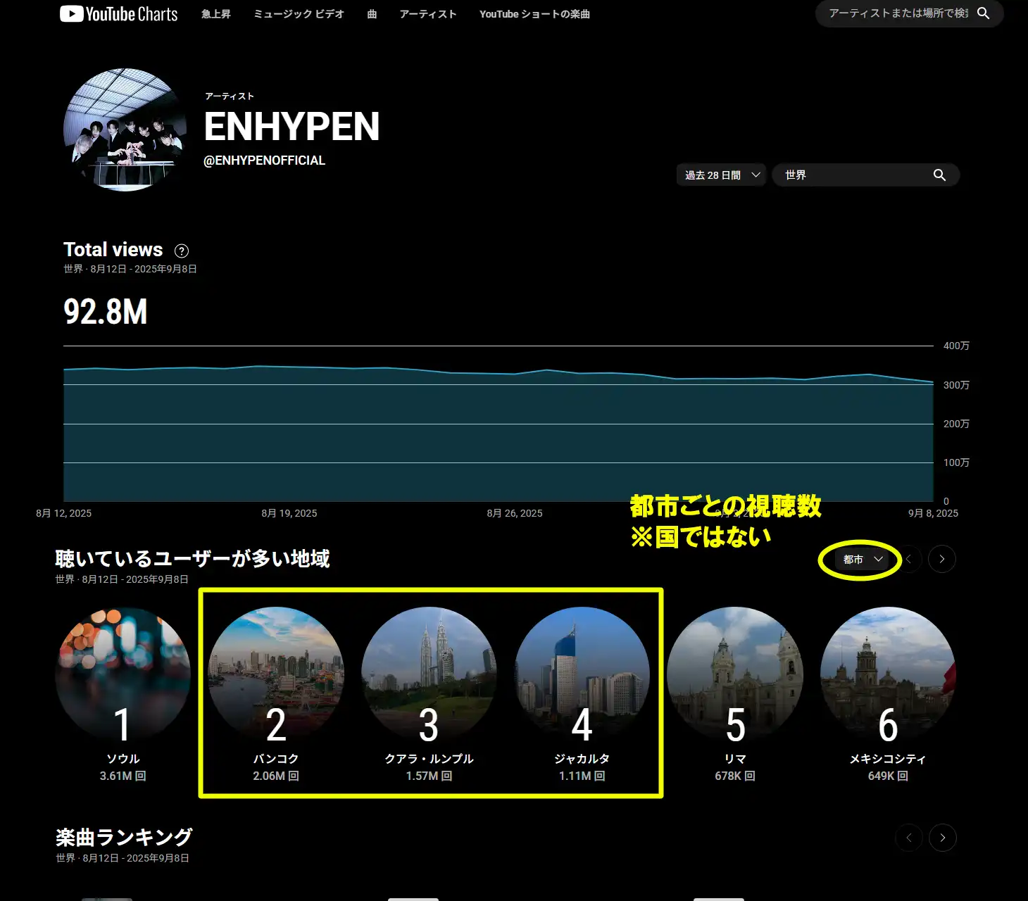 なお、YouTubeチャートで統計を見てみると…。