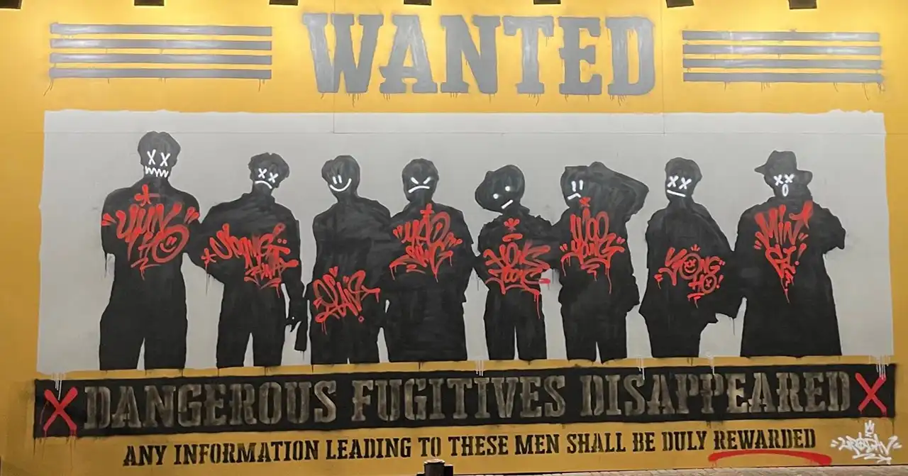 2つを見比べて見ると、WANTEDの両側の4本線、そして黒いシルエット、黒いシルエットの中の白い線で書かれた手書きの顔などが似ていることがわかります。もちろん、WANTED自体は西部劇でよく使われますので、皆さんも様々な媒体で様々な作品で見たことがあると思います。