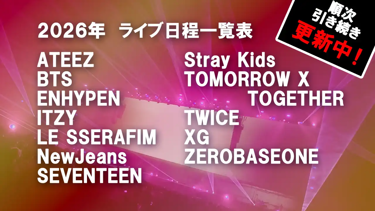 ワールドツアーやショーケースなどの単独ライブは同じ欄に詳細情報を記載しますが、合同ライブに関しては2026年合同ライブ一覧表に飛ぶようにリンクを貼ります。